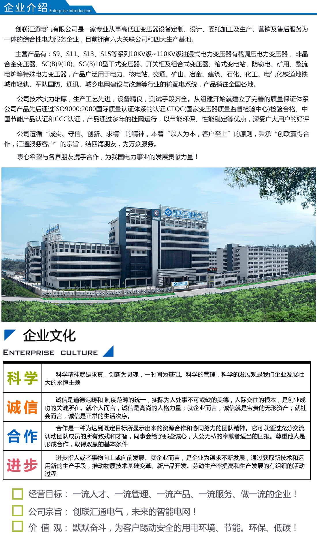 创联汇通主营产品有:S11(13)、S20(22)新能效及SH15系列10KV级~110KV级油浸式电力变